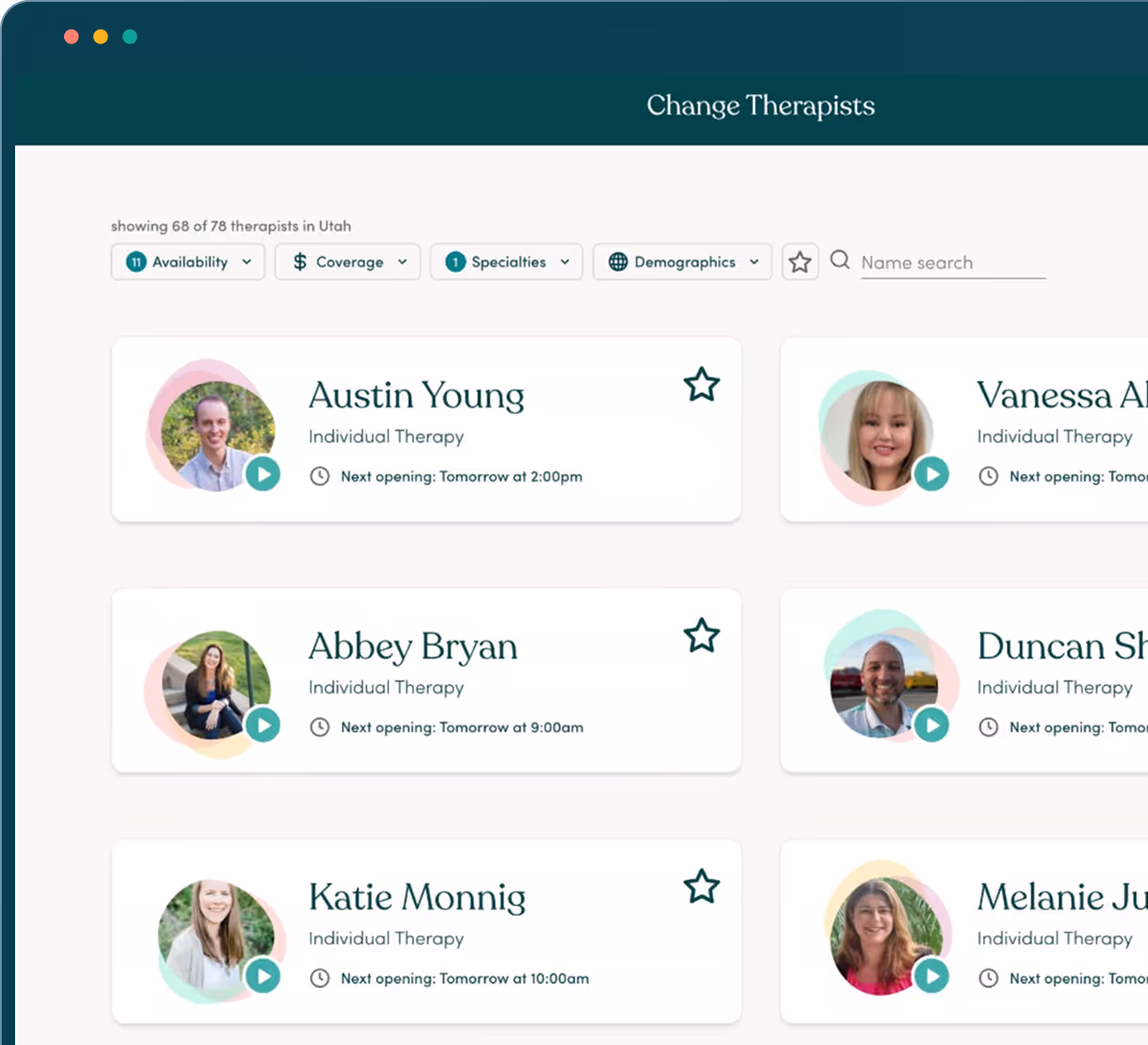 From finding the right therapist to seamless scheduling, Tava makes getting the help you deserve easy and stress-free.